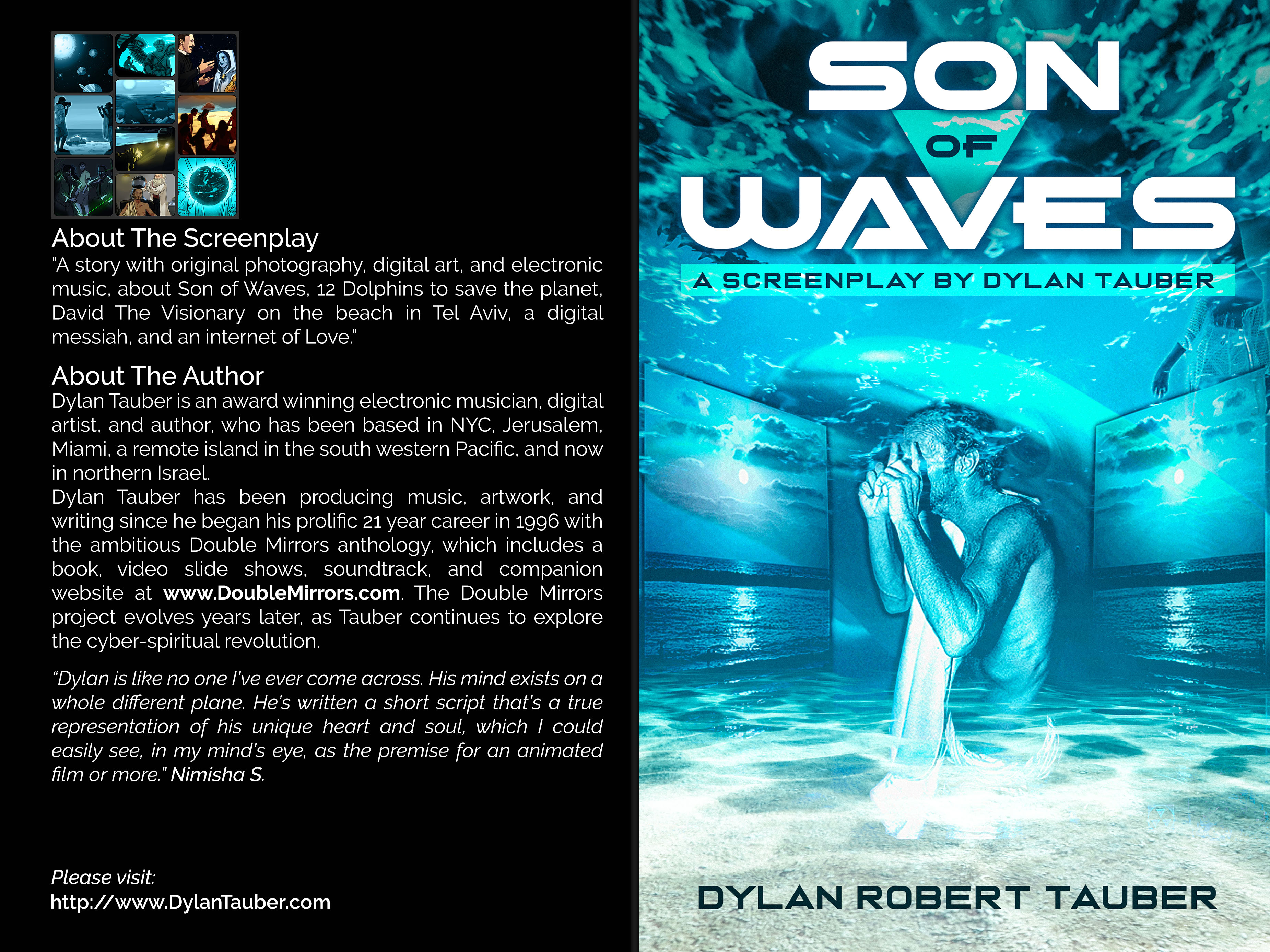 A story with original photography, digital art, and illustration, about Son of Waves, 12 Dolphins to save the planet, David The Visionary on the beach in Tel Aviv, a digital messiah, and an internet of Love.